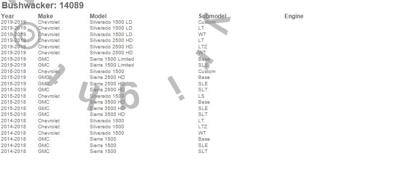 The innovator and creator of the fender flare category, Bushwacker¿ is a U.S. manufacturer of aftermarket and OE automotive accessories. The company specializes in quality products for trucks and Jeeps, utilizing ISO/TS standards with on-site design and tooling resources. Products include fender flares, bedrail caps, tailgate caps, and trail armor. Bushwacker is backed by more than 50 years of innovation and industry-leading customer service.