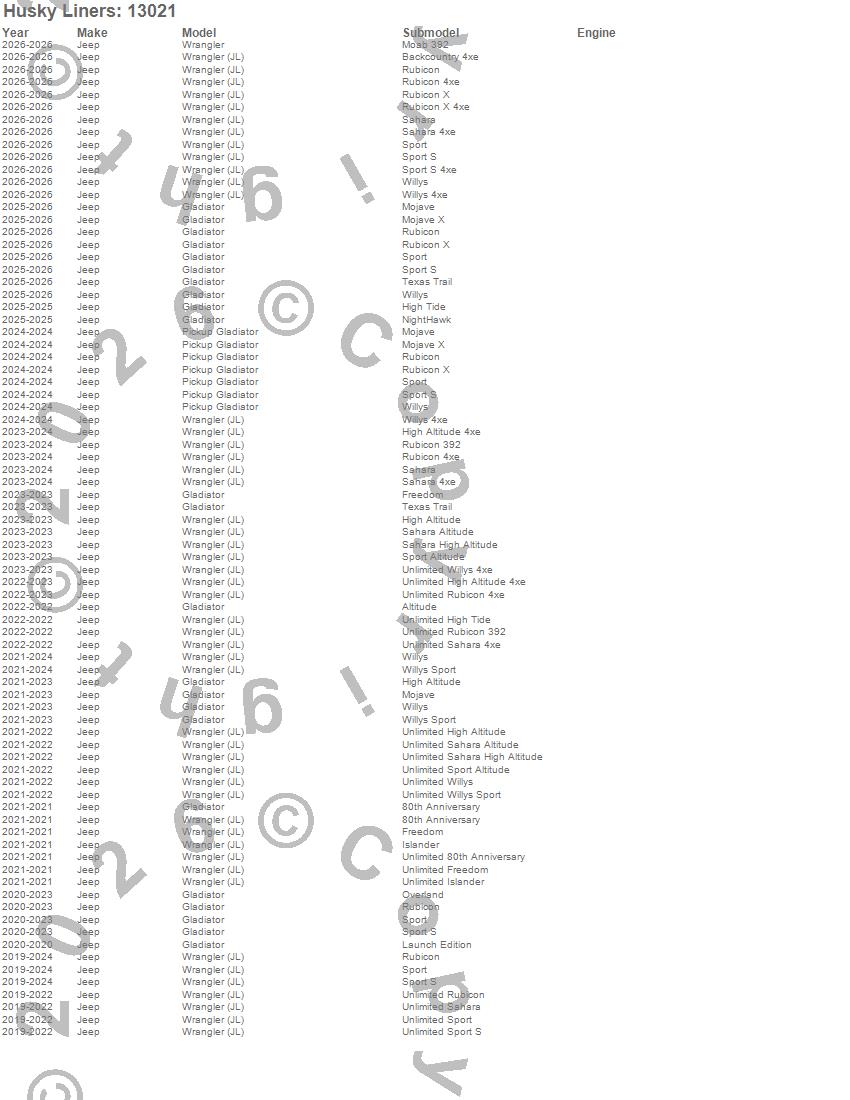 • Husky Liners