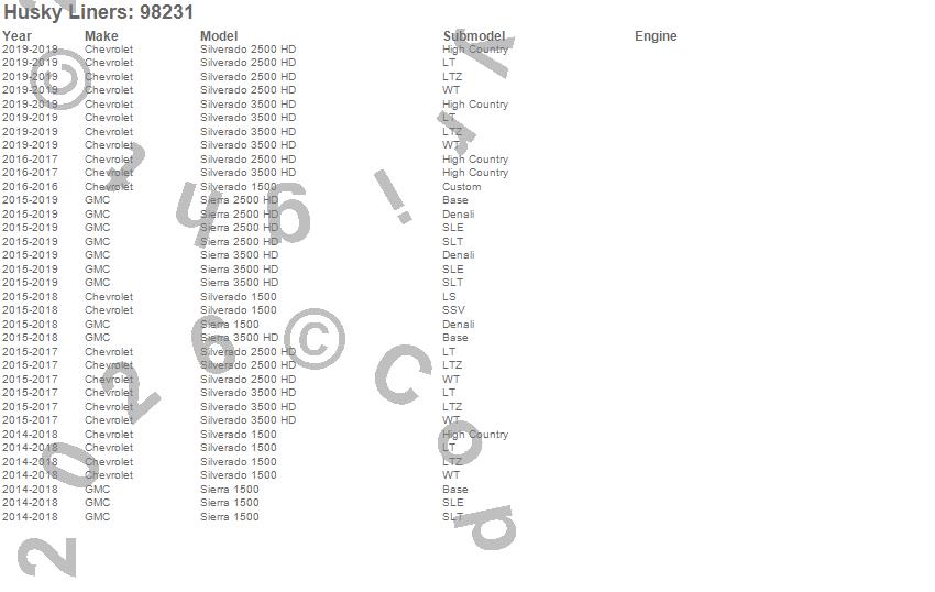 • Husky Liners