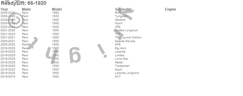 ReadyLift - Leveling Kit P/N 66-1920 Features: