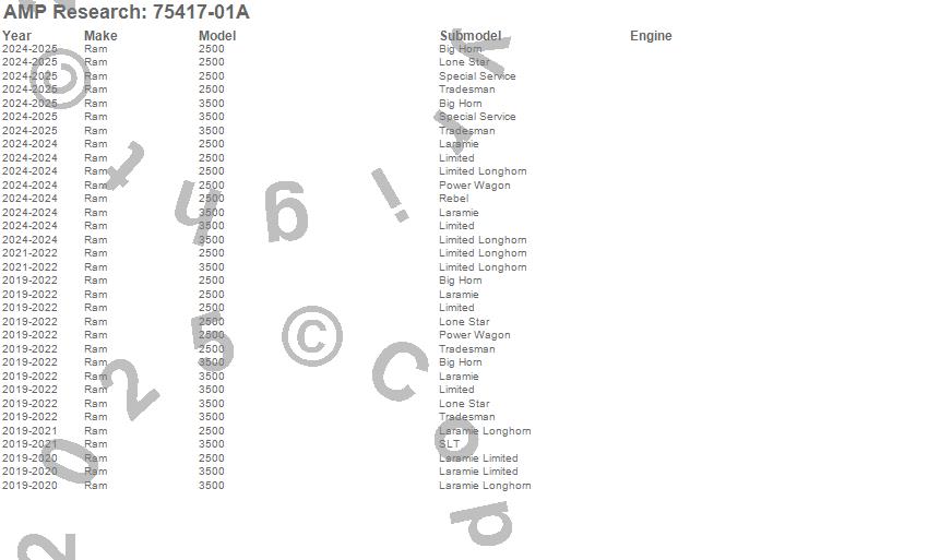 The inventor of the electric running board and bed extender categories, AMP Research¿ is a U.S. manufacturer of aftermarket and OE automotive accessories for trucks, Jeeps, SUVs, and Vans. The company specializes in quality products utilizing ISO/TS standards with on-site design and tooling resources. The company's motto, "Innovation In Motion", captures the groundbreaking mix of breakthrough products the company has brought to the market. Current products include: PowerStep(TM), PowerStep XL(TM), PowerStep(TM) Xtreme, BedStep(TM), BedStep2(TM), and BedXtender HD(TM).