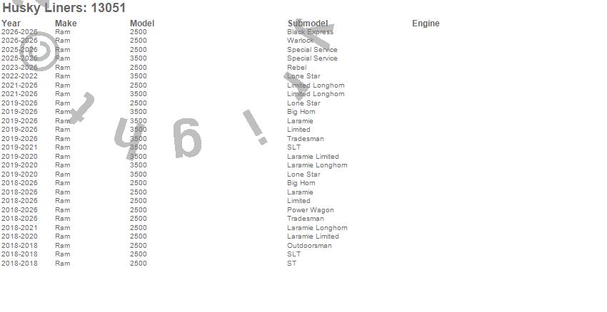 Husky Liners - WeatherBeater Floor Liner P/N 13051 Features: