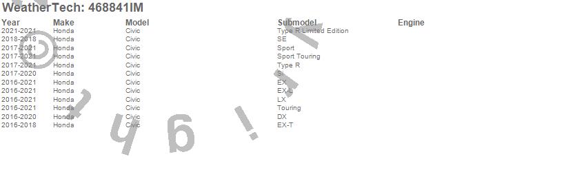 WeatherTech - 3D Floor Mats P/N 468841IM Features:
