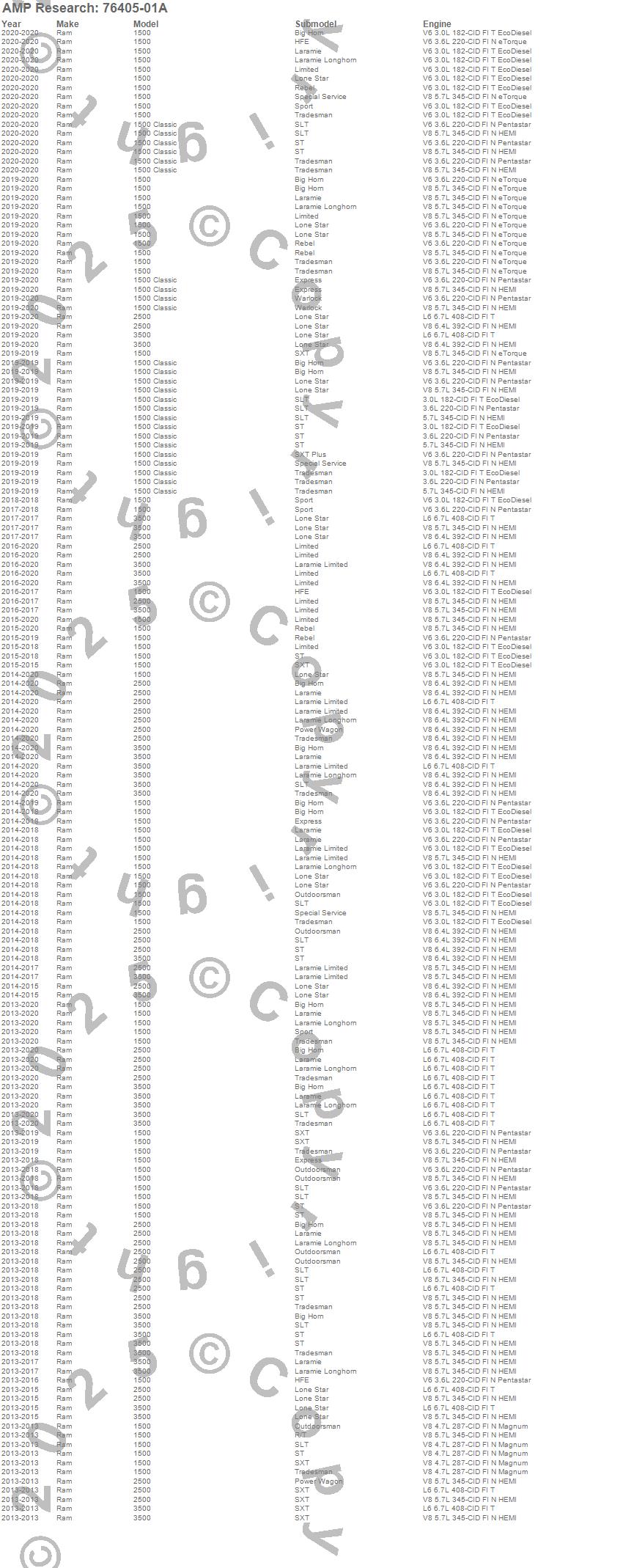 The inventor of the electric running board and bed extender categories, AMP Research¿ is a U.S. manufacturer of aftermarket and OE automotive accessories for trucks, Jeeps, SUVs, and Vans. The company specializes in quality products utilizing ISO/TS standards with on-site design and tooling resources. The company's motto, "Innovation In Motion", captures the groundbreaking mix of breakthrough products the company has brought to the market. Current products include: PowerStep(TM), PowerStep XL(TM), PowerStep(TM) Xtreme, BedStep(TM), BedStep2(TM), and BedXtender HD(TM).