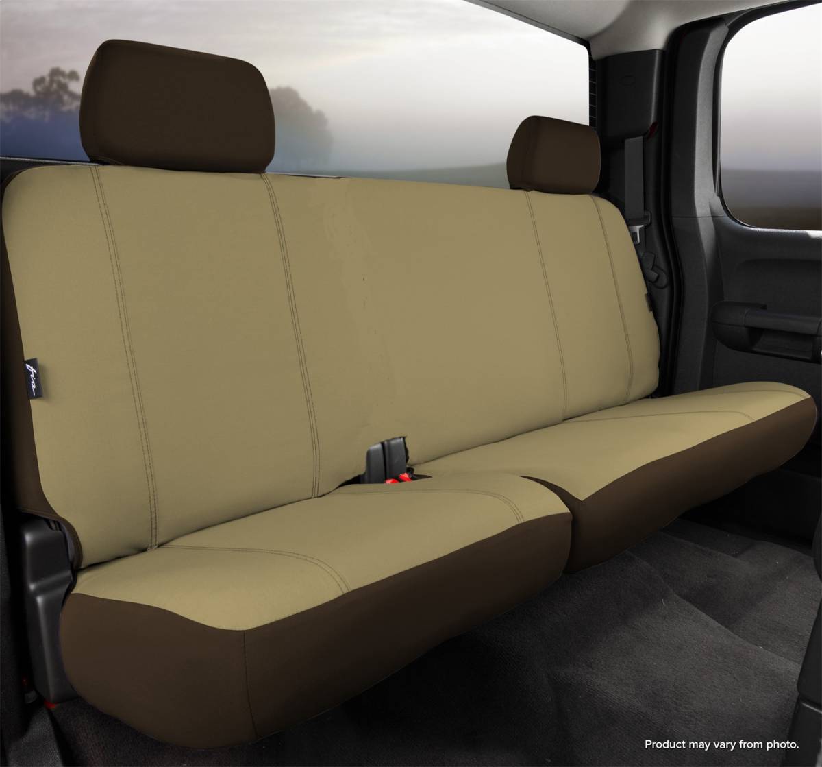 Poly-Cotton - Taupe - Split Cushion 60/40 - Solid Backrest - Adjustable Headrests - Center Seat Belt