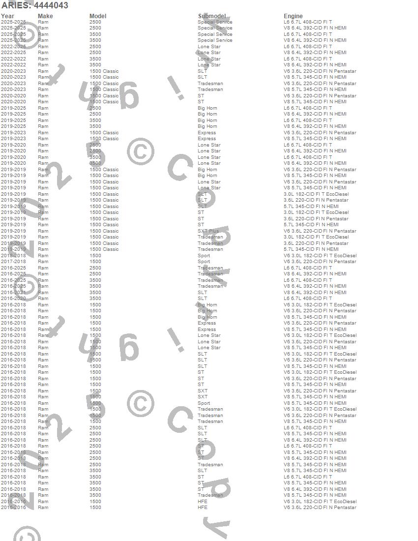 Aries Automotive hit the road running in 1997. We have since become an industry leader in providing the latest truck and SUV models with unparalleled tubular steel, aluminum, carbon fiber and ABS plastic products. We have furthered our success by recently expanding our operations in San Antonio, Texas, Harbor City, California, and Richmond, Canada. This has enabled us to meet the increasing demands for our unique and innovative products with on time delivery, at competitive rates. When searching for the latest model application, or simply a top quality automotive aftermarket product, call on Aries Automotive.
