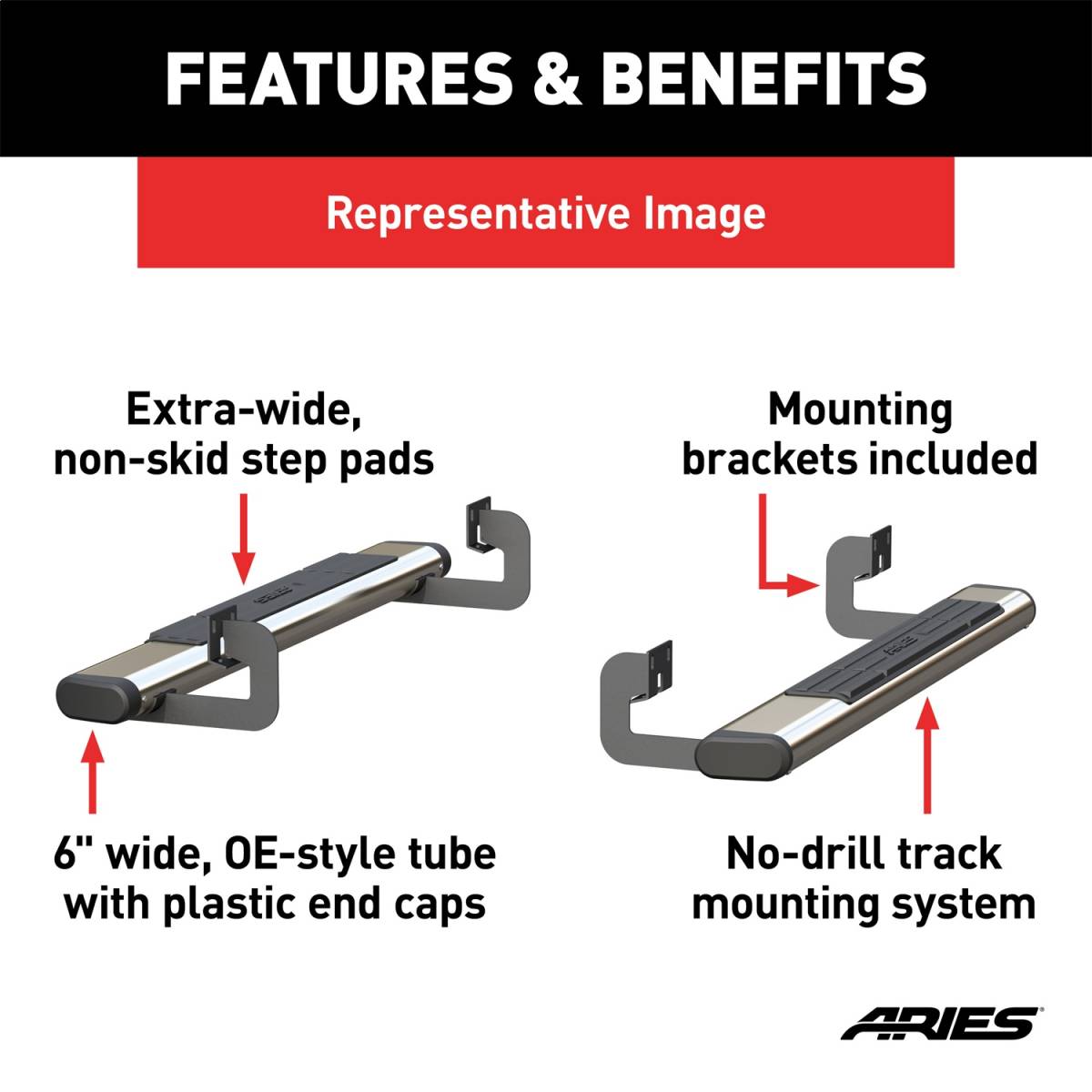ARIES - The Standard 6 in. Oval Nerf Bar w/Mounting Brackets P/N 4444040 Features: