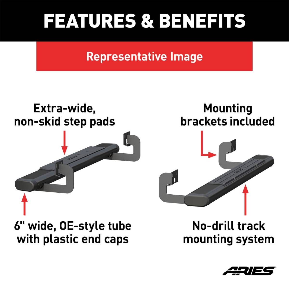 ARIES - The Standard 6 in. Oval Nerf Bar w/Mounting Brackets P/N 4445043 Features: