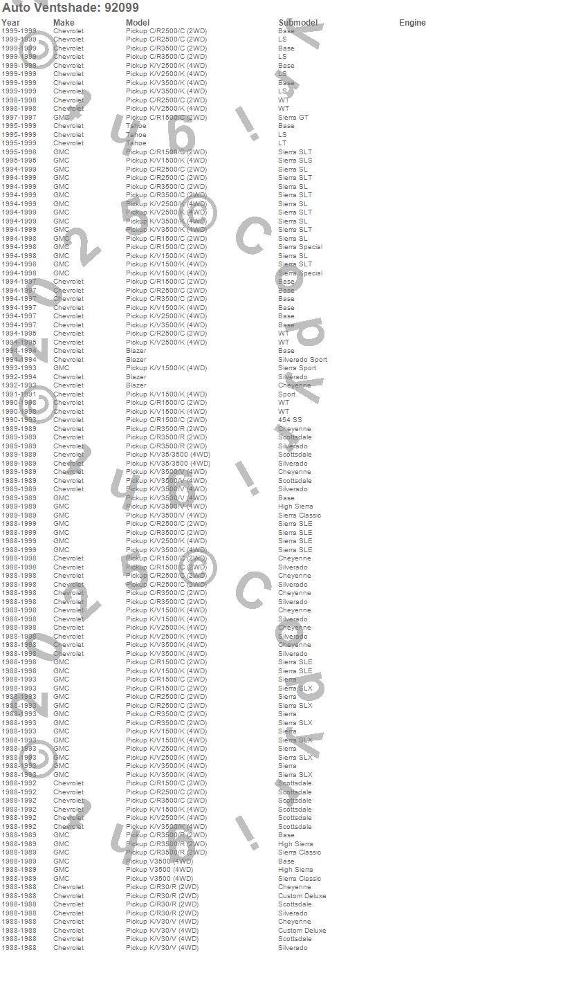Auto Ventshade - Ventvisor Deflector 2 pc. P/N 92099 Features: