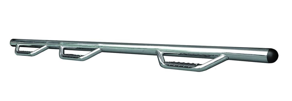 The Dominator D3 is made of 3 round tubing and features 3 drop-down steps that run from the front to real wheel wells. The one-piece design makes for easier installation!