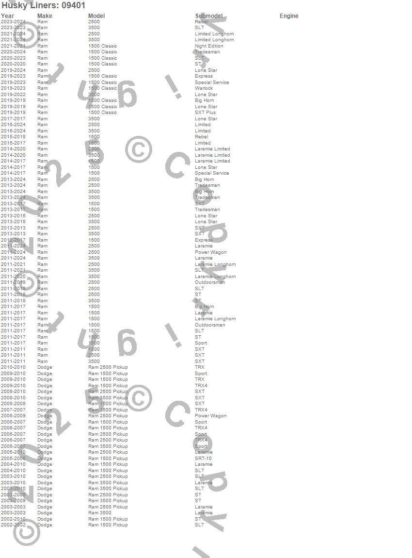 • Husky Liners