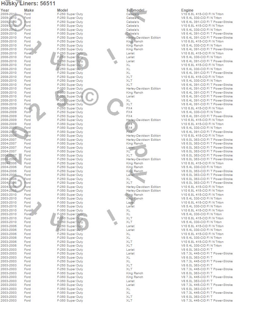 Husky Liners - Custom Molded Mud Guards P/N 56511 Features: