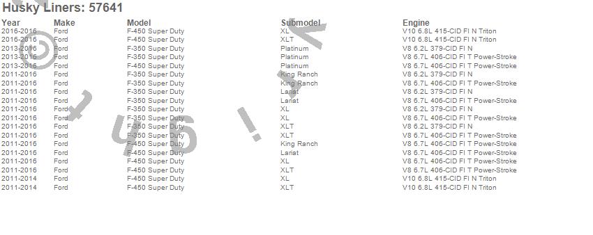 Husky Liners - Custom Molded Mud Guards P/N 57641 Features: