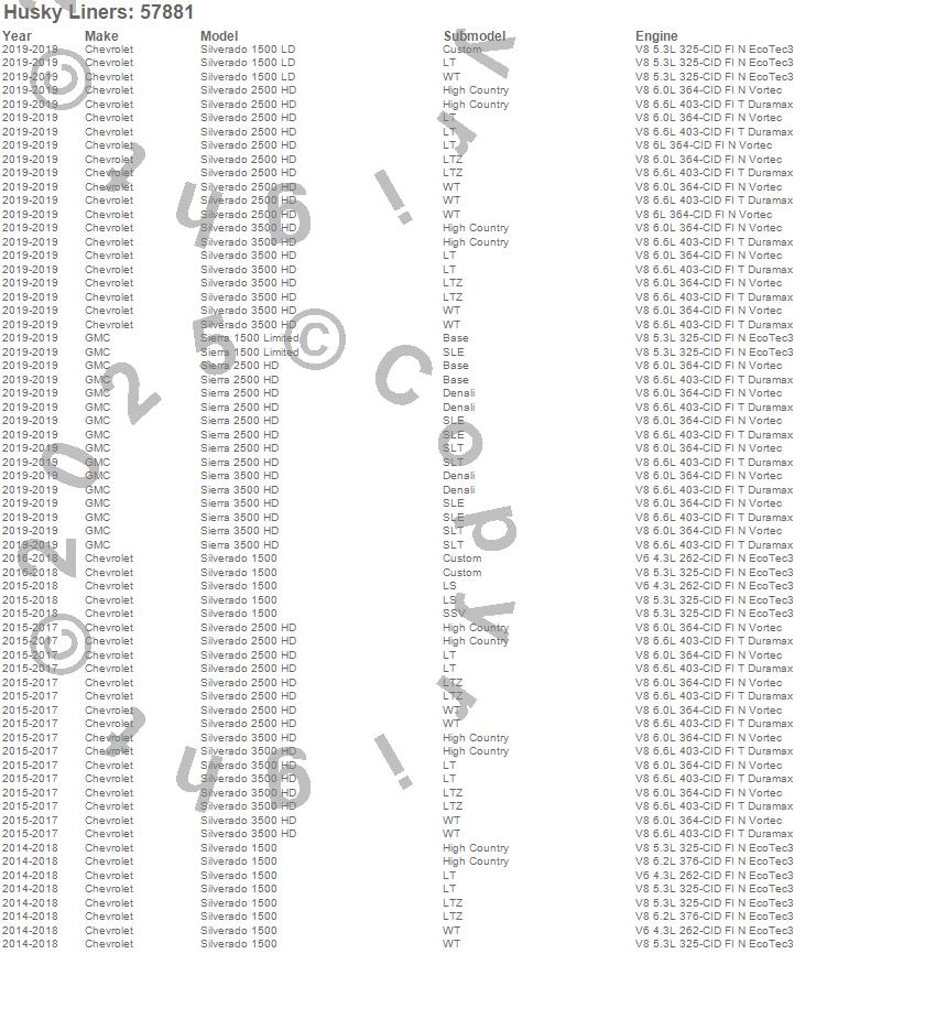 Husky Liners - Custom Molded Mud Guards P/N 57881 Features: