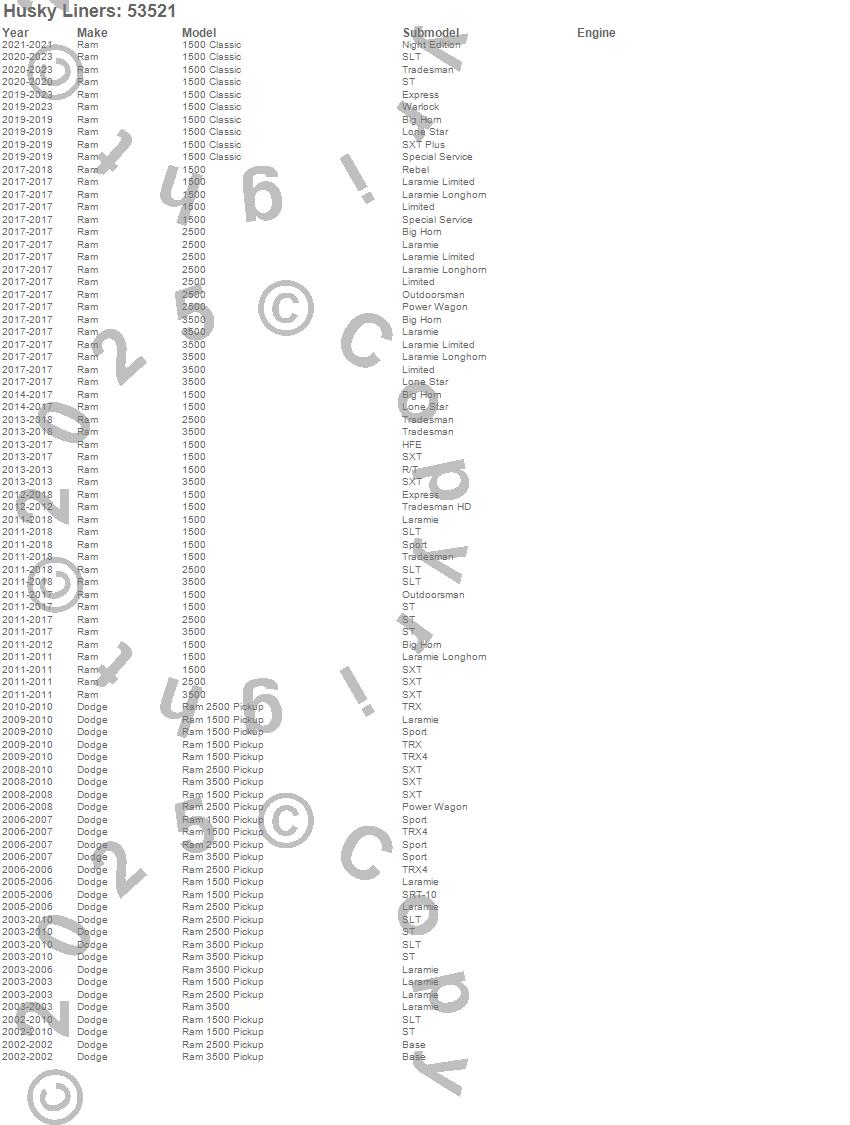 • Husky Liners