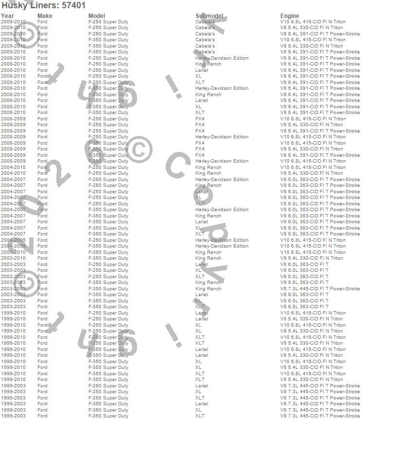 Husky Liners - Custom Molded Mud Guards P/N 57401 Features:
