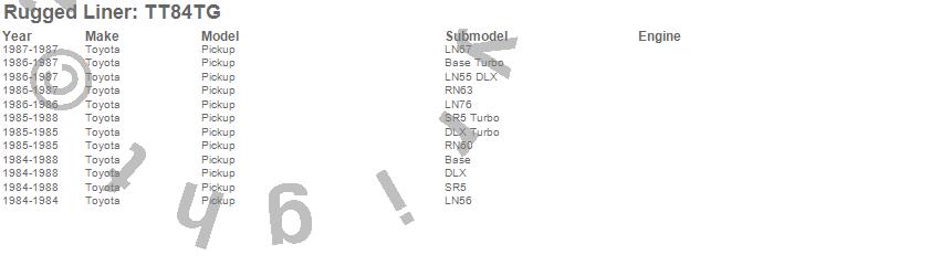Rugged Liner - Rugged Liner Tailgate Liner P/N TT84TG Features: