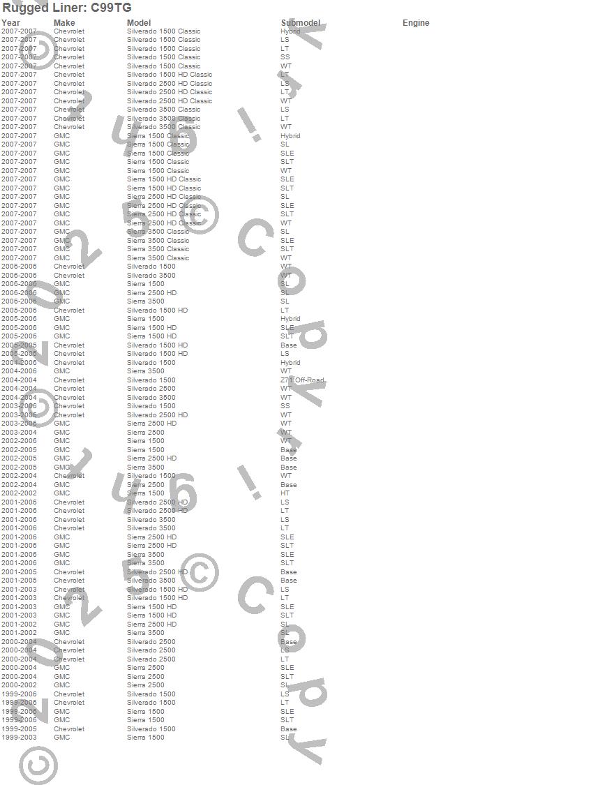 Rugged Liner - Rugged Liner Tailgate Liner P/N C99TG Features: