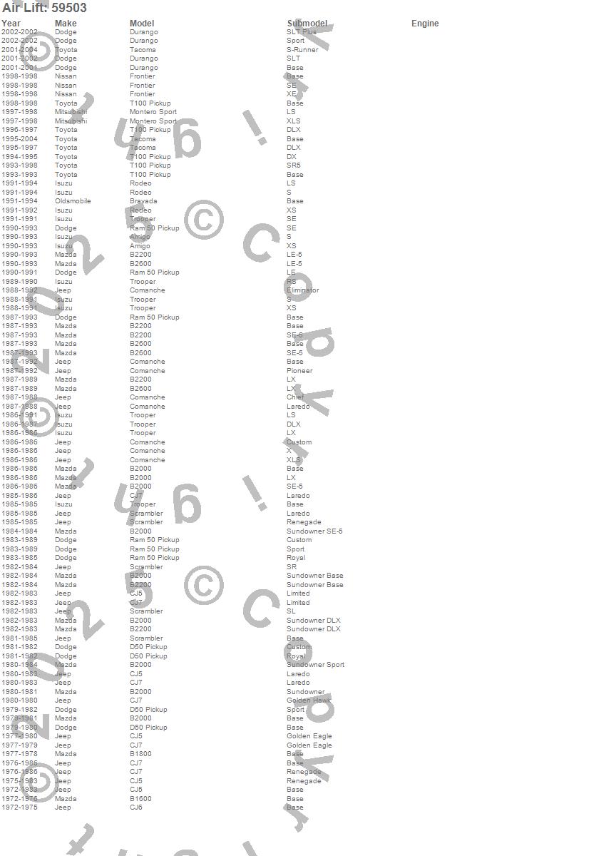 Air Lift - Ride Control Kit P/N 59503 Features: