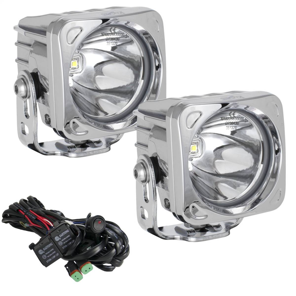 Chrome - Square - 6 in. x 6 in. x 3.5 in. - 12-32V DC - 10W - 10 Degree Beam Lamp Pattern - Pair - Stock Code XIL-OP110CKIT