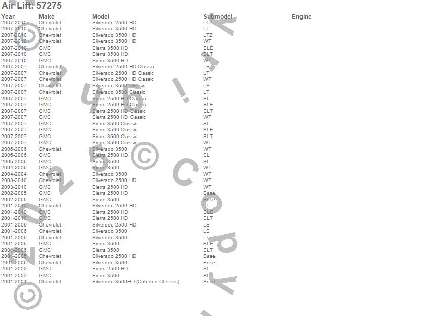 Air Lift - LoadLifter 5000 Leveling Kit P/N 57275 Features:
