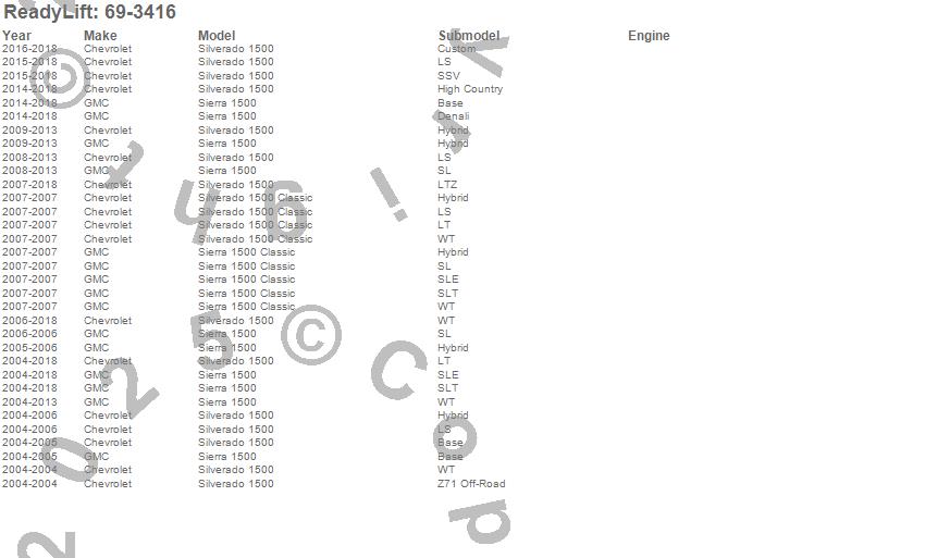 ReadyLift - SST Lift Kit P/N 69-3416 Features: