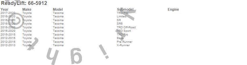 ReadyLift - Front Leveling Kit P/N 66-5912 Features: