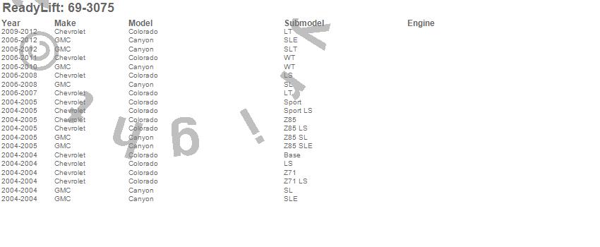 ReadyLift - SST Lift Kit P/N 69-3075 Features:
