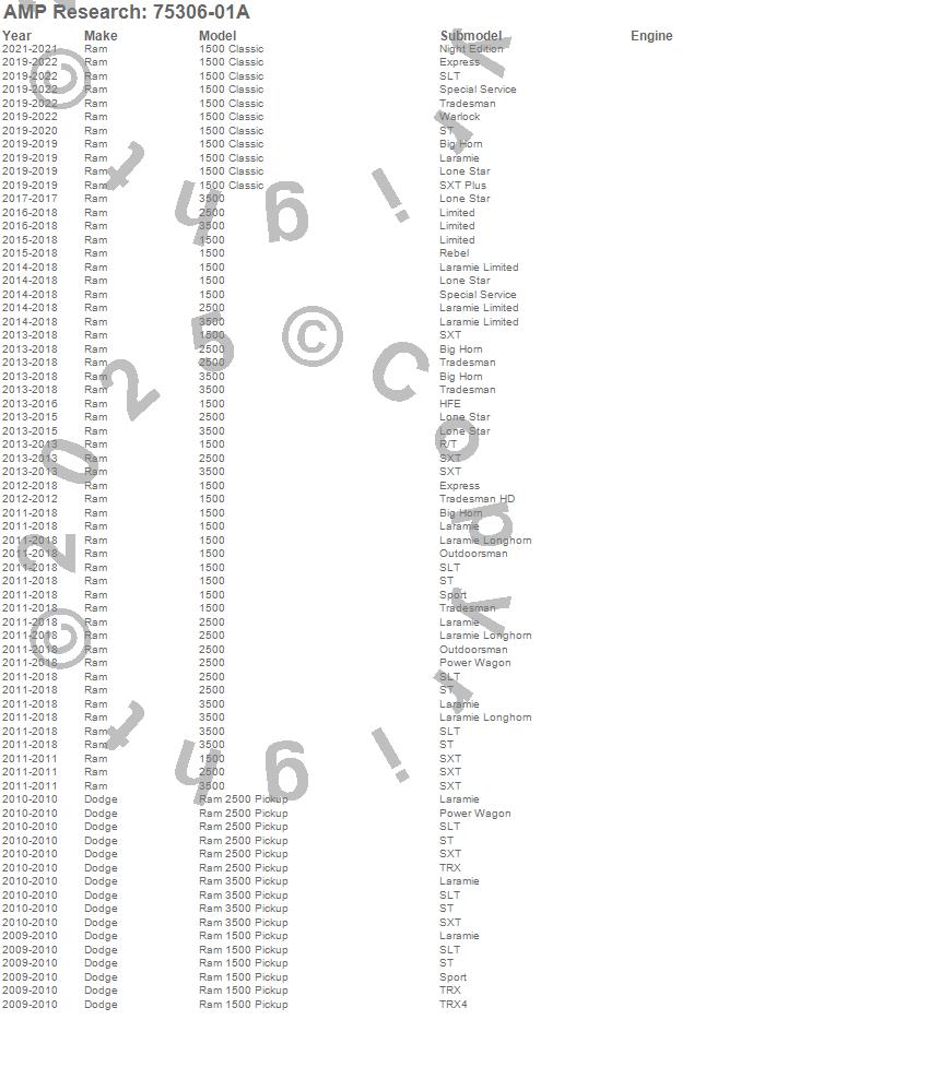 The inventor of the electric running board and bed extender categories, AMP Research¿ is a U.S. manufacturer of aftermarket and OE automotive accessories for trucks, Jeeps, SUVs, and Vans. The company specializes in quality products utilizing ISO/TS standards with on-site design and tooling resources. The company's motto, "Innovation In Motion", captures the groundbreaking mix of breakthrough products the company has brought to the market. Current products include: PowerStep(TM), PowerStep XL(TM), PowerStep(TM) Xtreme, BedStep(TM), BedStep2(TM), and BedXtender HD(TM).
