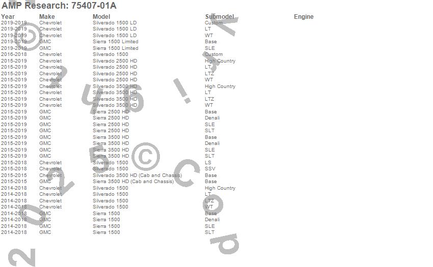The inventor of the electric running board and bed extender categories, AMP Research¿ is a U.S. manufacturer of aftermarket and OE automotive accessories for trucks, Jeeps, SUVs, and Vans. The company specializes in quality products utilizing ISO/TS standards with on-site design and tooling resources. The company's motto, "Innovation In Motion", captures the groundbreaking mix of breakthrough products the company has brought to the market. Current products include: PowerStep(TM), PowerStep XL(TM), PowerStep(TM) Xtreme, BedStep(TM), BedStep2(TM), and BedXtender HD(TM).