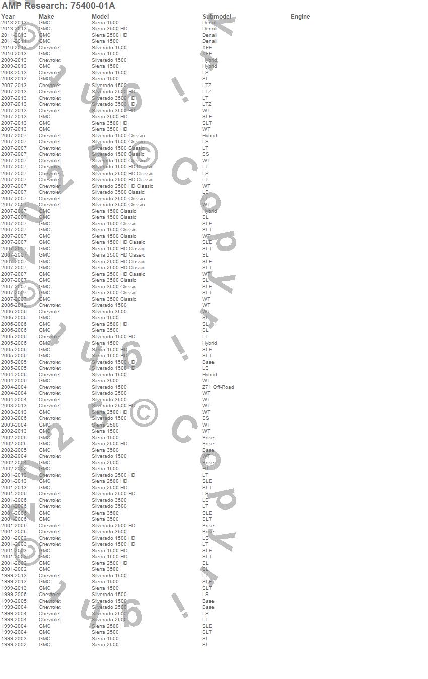 The inventor of the electric running board and bed extender categories, AMP Research¿ is a U.S. manufacturer of aftermarket and OE automotive accessories for trucks, Jeeps, SUVs, and Vans. The company specializes in quality products utilizing ISO/TS standards with on-site design and tooling resources. The company's motto, "Innovation In Motion", captures the groundbreaking mix of breakthrough products the company has brought to the market. Current products include: PowerStep(TM), PowerStep XL(TM), PowerStep(TM) Xtreme, BedStep(TM), BedStep2(TM), and BedXtender HD(TM).
