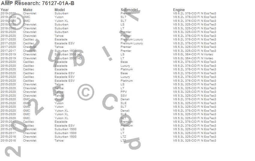 The inventor of the electric running board and bed extender categories, AMP Research¿ is a U.S. manufacturer of aftermarket and OE automotive accessories for trucks, Jeeps, SUVs, and Vans. The company specializes in quality products utilizing ISO/TS standards with on-site design and tooling resources. The company's motto, "Innovation In Motion", captures the groundbreaking mix of breakthrough products the company has brought to the market. Current products include: PowerStep(TM), PowerStep XL(TM), PowerStep(TM) Xtreme, BedStep(TM), BedStep2(TM), and BedXtender HD(TM).