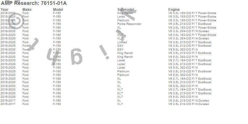 The inventor of the electric running board and bed extender categories, AMP Research¿ is a U.S. manufacturer of aftermarket and OE automotive accessories for trucks, Jeeps, SUVs, and Vans. The company specializes in quality products utilizing ISO/TS standards with on-site design and tooling resources. The company's motto, "Innovation In Motion", captures the groundbreaking mix of breakthrough products the company has brought to the market. Current products include: PowerStep(TM), PowerStep XL(TM), PowerStep(TM) Xtreme, BedStep(TM), BedStep2(TM), and BedXtender HD(TM).